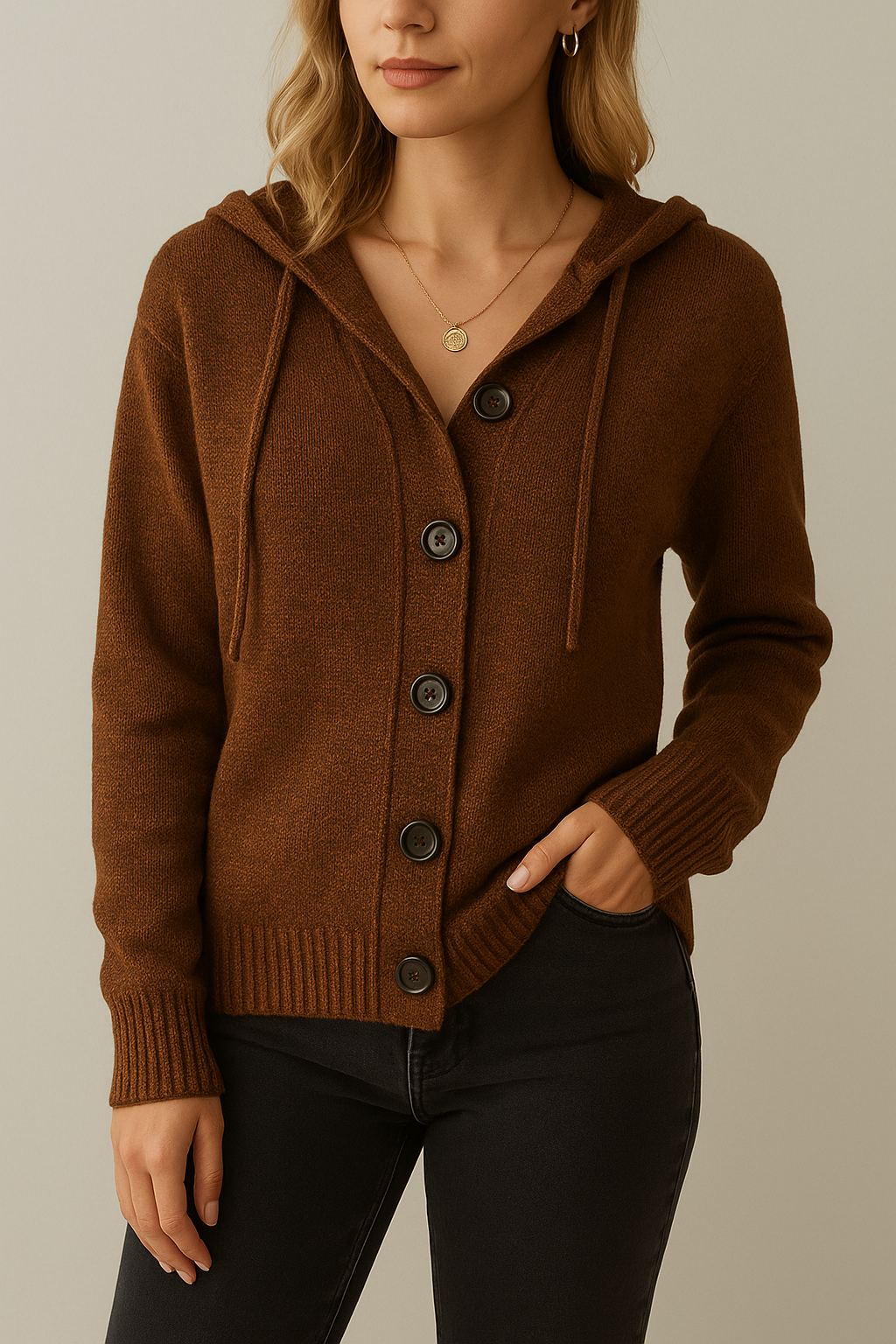 Stay warm and effortlessly stylish with the Relaxed Hooded Knit Cardigan – the ultimate go-to layer for cool days and cozy evenings. With its soft texture, roomy fit, and classic button-up design, this cardigan blends comfort and casual elegance with ease. Whether you're lounging at home or layering up for a day out, this wardrobe staple keeps things simple and stylish.